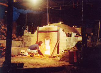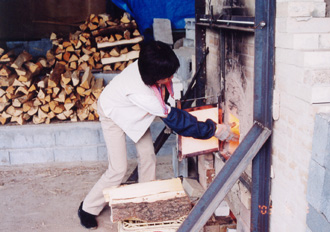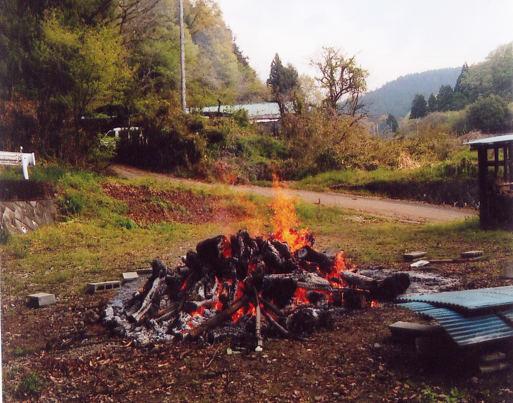 | 風の無い日に雑木を燃やし、 土灰を作る |