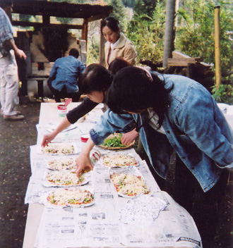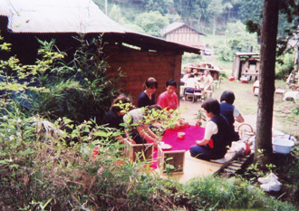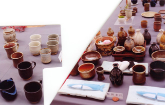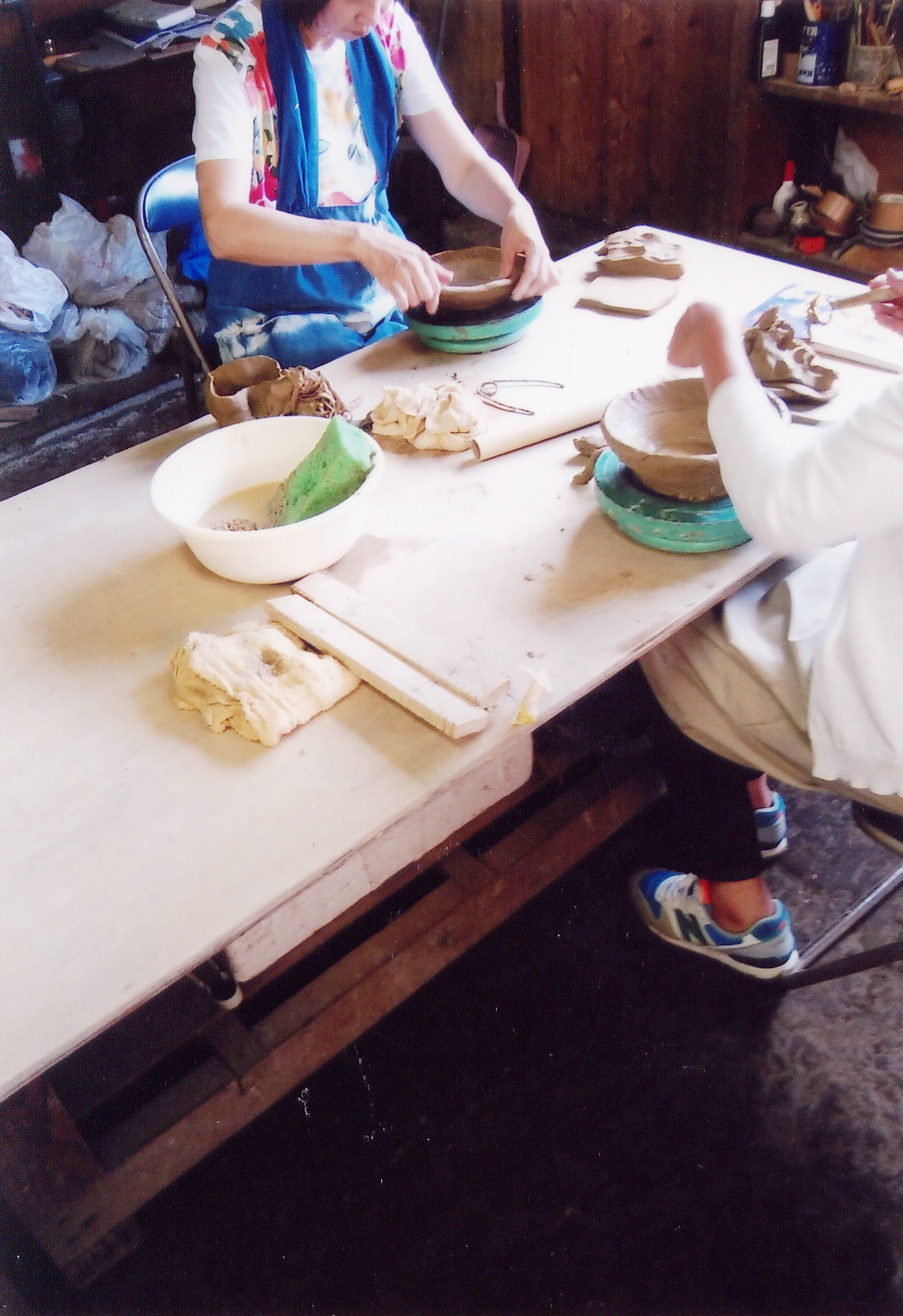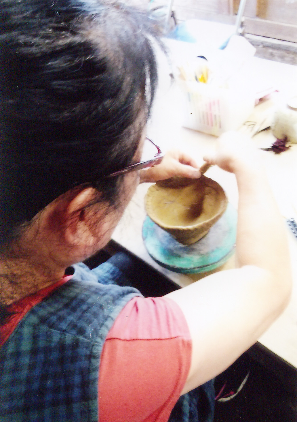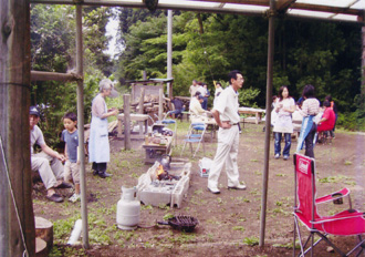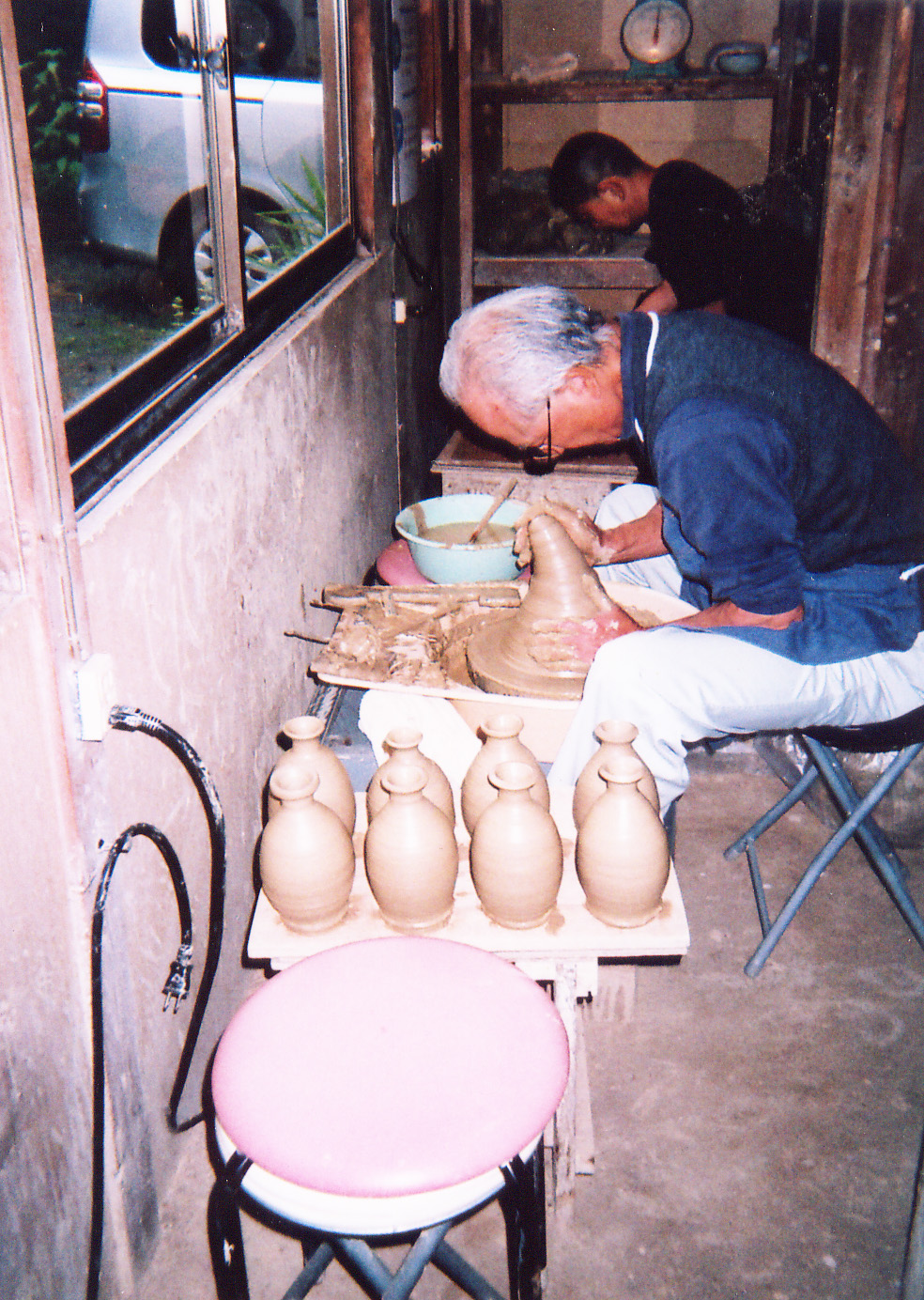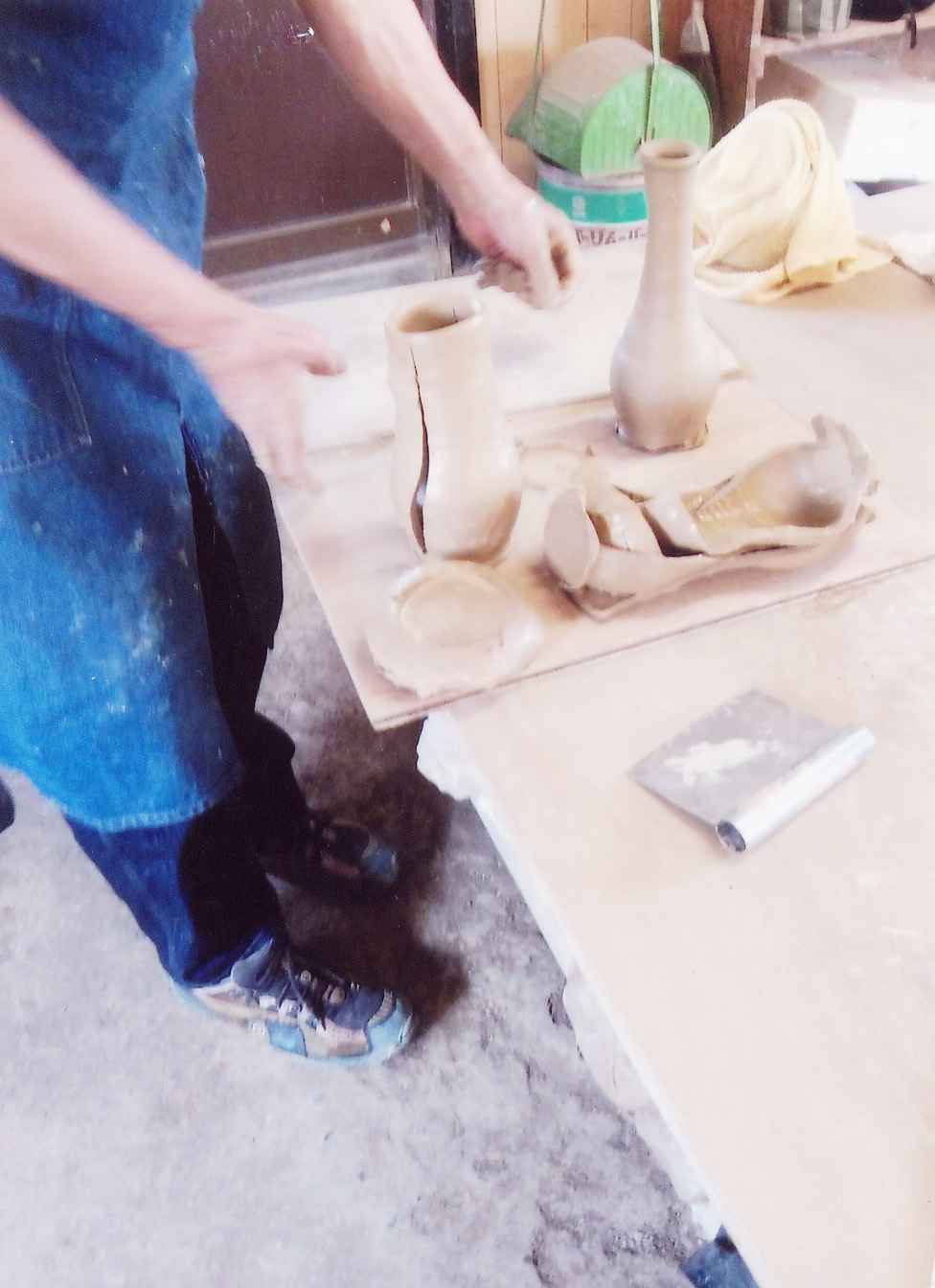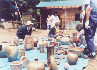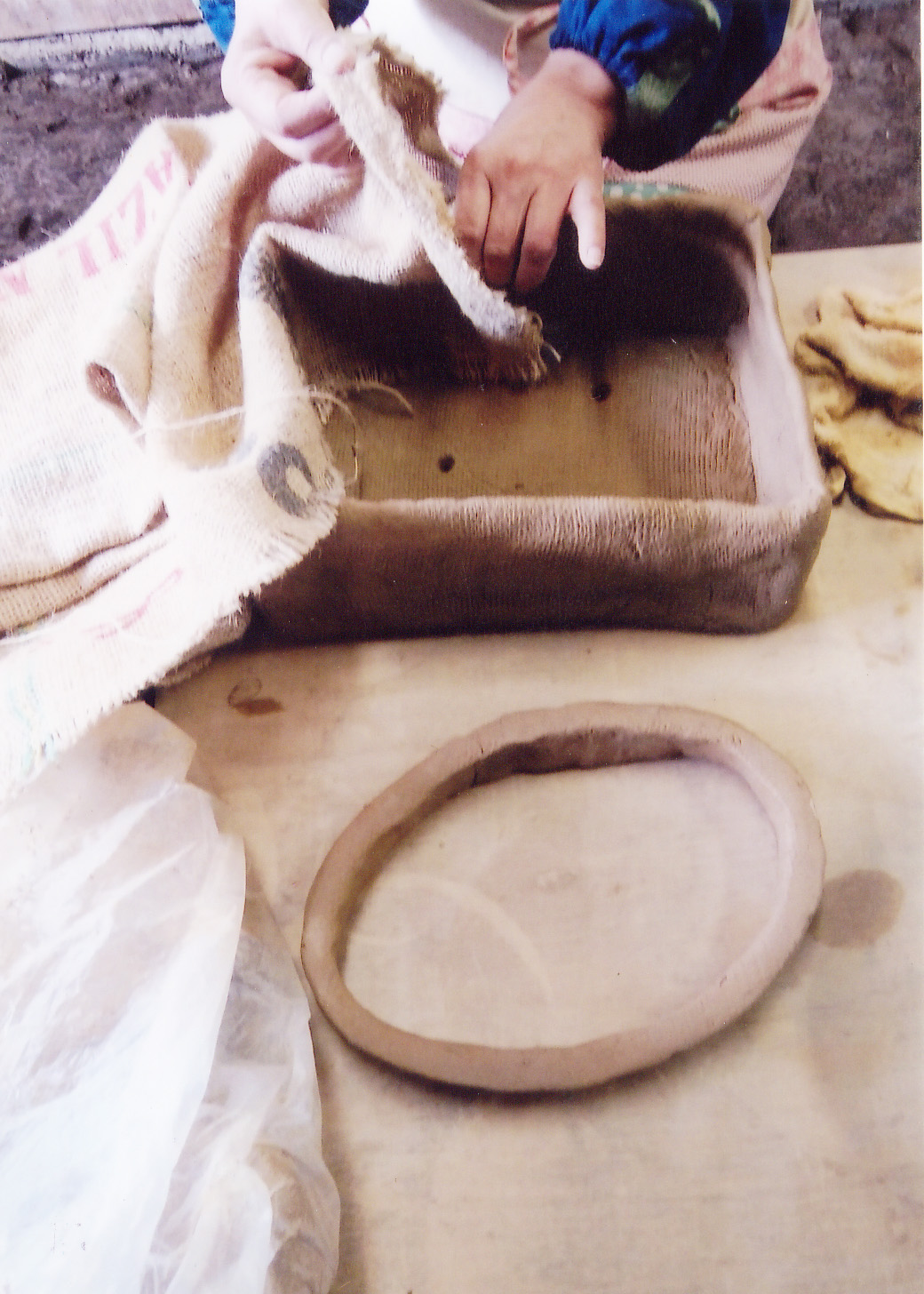 | 粘土質の採掘 | 天日干し | 桶に入れて撹拌 |