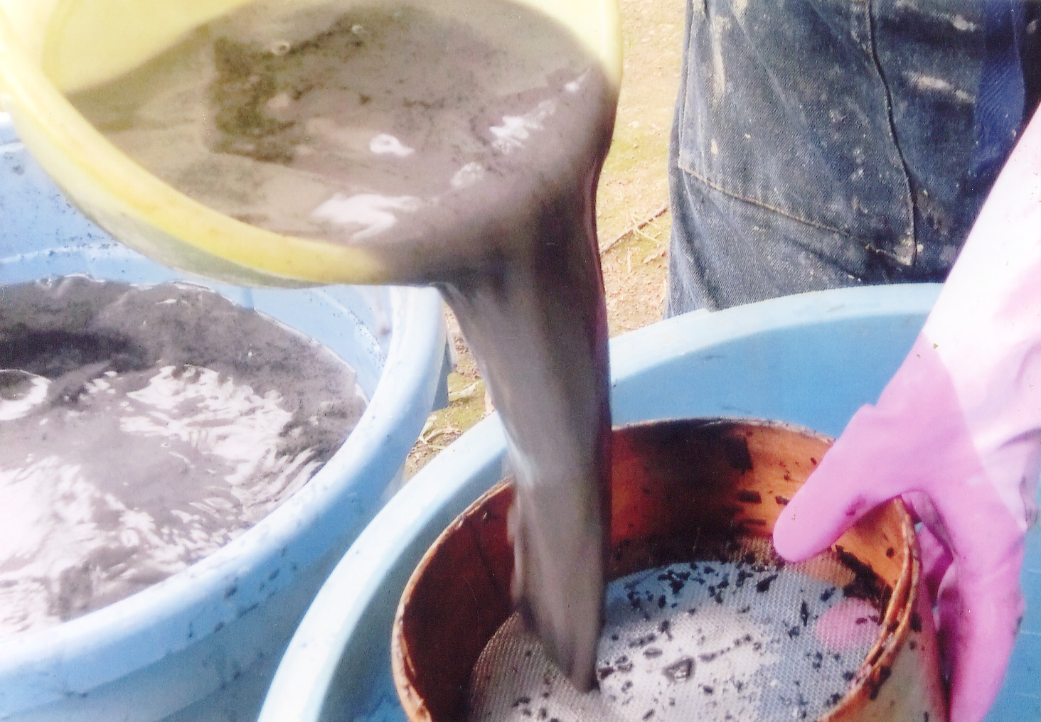 | 20目のふるいを通す | 40目のふるいを通す | 2~3週間沈殿させる |